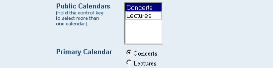 Select the calendars you would like your event posted to. You can add an event to any public or private calendars that you have created. Once you select the calendars you would like your new event to be added to, you will be asked which should be the primary calendar; this will be the calendar that your event “lives” on, but the event will be listed on each of the calendars you select here. |