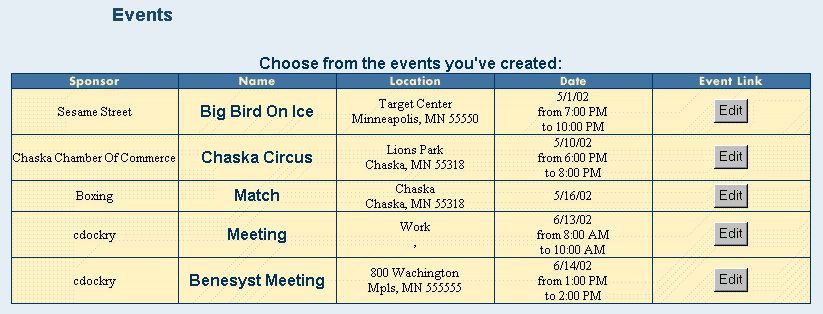 Click on the name of the event you would like to view in detail.